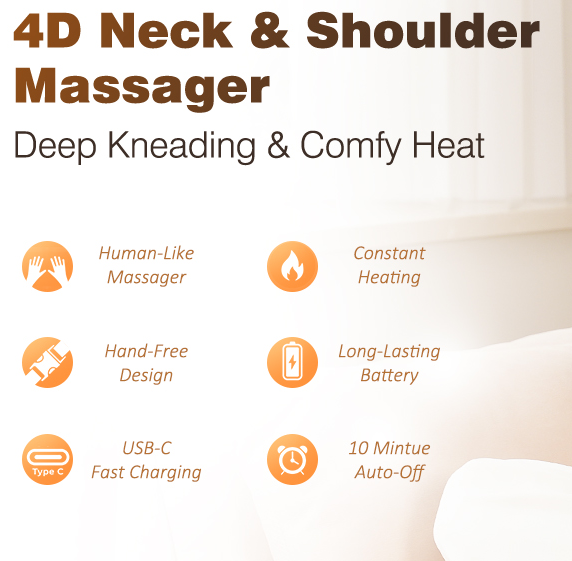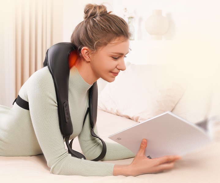 Compaxx portable-grade neck massager replicates real palm kneading with soothing heat. Designed for deep relaxation, hands-free comfort, and everyday relief—wherever you are.